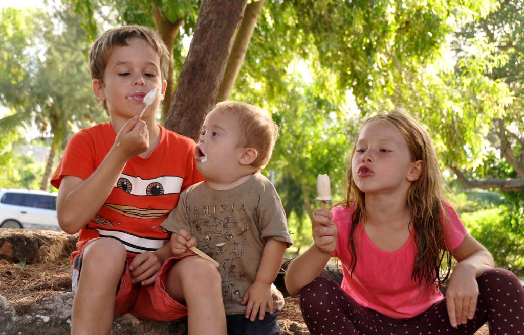 Da ich am Abend noch einen Termin hatte, sind wir gegen halb vier schon wieder aufgebrochen. Es gab noch einen kurzen Stopp im Supermarkt, weil die Kinder sich ein Eis gewünscht hatten. Und dann ging es nach Hause. Mili wollte bei uns mitfahren und folglich ging das Gekichere im Auto ununterbrochen weiter.