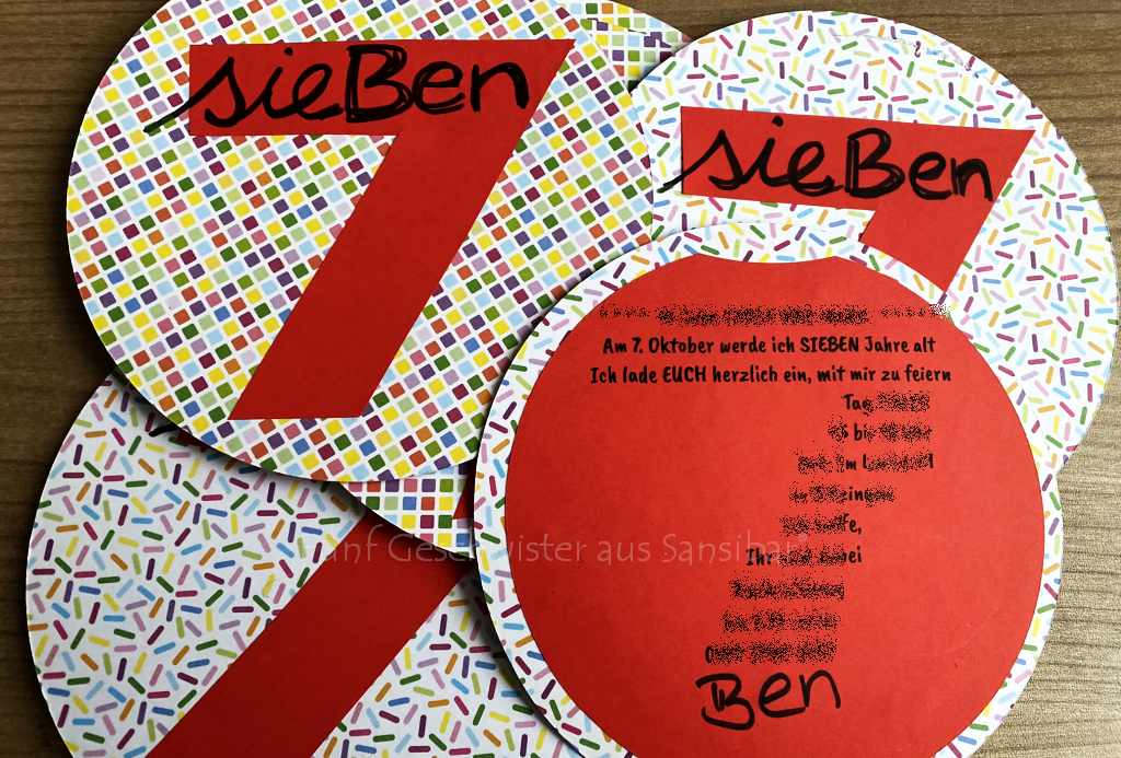 Das Thema stand für mich schon fest, was aber nicht die große Erleichterung mit sich brachte, sondern zusätzliche Grübelei einforderte. Sieben am 7. wird mein Sohn nur einmal in seinem Leben (eine Gemeinsamkeit, die er mit seinem älteren Bruder teilt). Wenn der goldene Geburtstag auf so eine besondere Zahl wie die SIEBEN fällt, dann darf es auch am Fest selbst in aller Ausführlichkeit und Vielfalt um eben diese gehen.