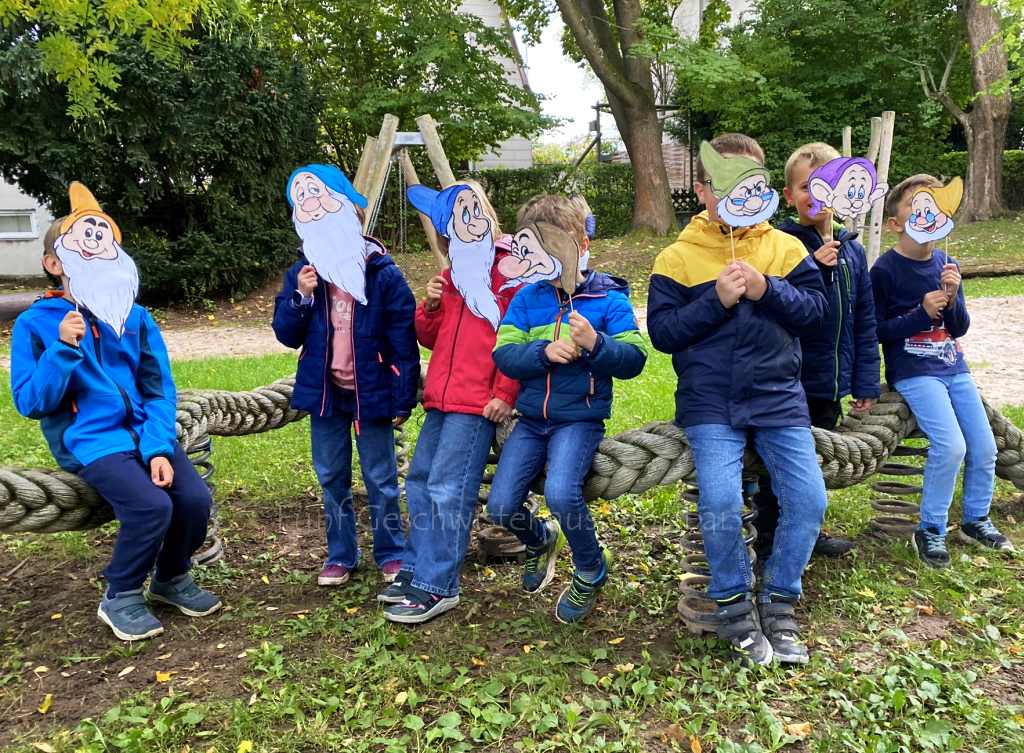 Es gab sieben unterschiedliche Aufgaben, die sie gemeinsam erledigen mussten. Da die Zahl 7 in der Welt der Märchen des Öfteren auftaucht, wurden einige davon in spielerische Aufgaben verpackt. So mussten die Kinder unter anderem die sieben Geißlein in einem Garten suchen, des tapferen Schneiderleins Eifer nachahmen und sieben Fliegen auf einen Streich treffen und ein Fotoshooting mit den sieben Zwergen durchführen.