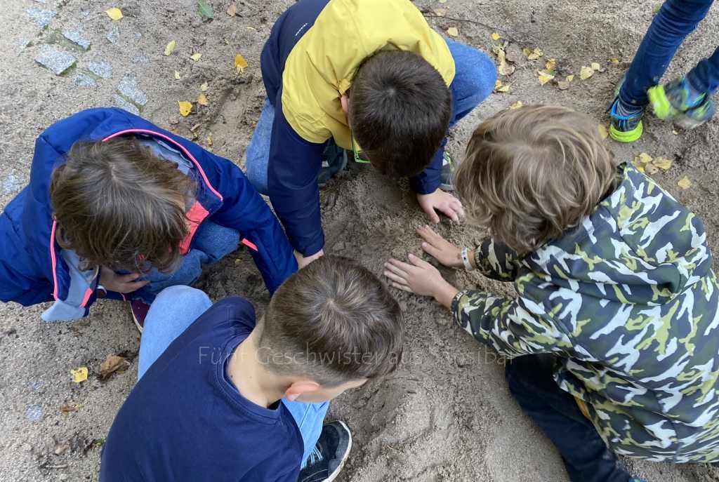 Ich hatte meinen Mann als Assistent eingespannt, weil ich zwischendurch noch einen Teil der Stationen vorbereiten musste und deshalb nicht allein mit den Kindern losgehen konnte. Die Truppe zog erwartungsvoll von dannen und war in den kommenden knapp 2 Stunden gut beschäftigt.