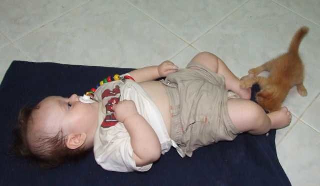 Allerdings hat Joel mit gleicher Münze zurück gezahlt und sich zielstrebig den Hinterlauf der Katze geschnappt, die daraufhin ein wenig protestiert hat. (Leider kein Foto – ich hab statt zu knipsen die Katze befreit, denn wenn Joel mal zugreift, dann richtig).