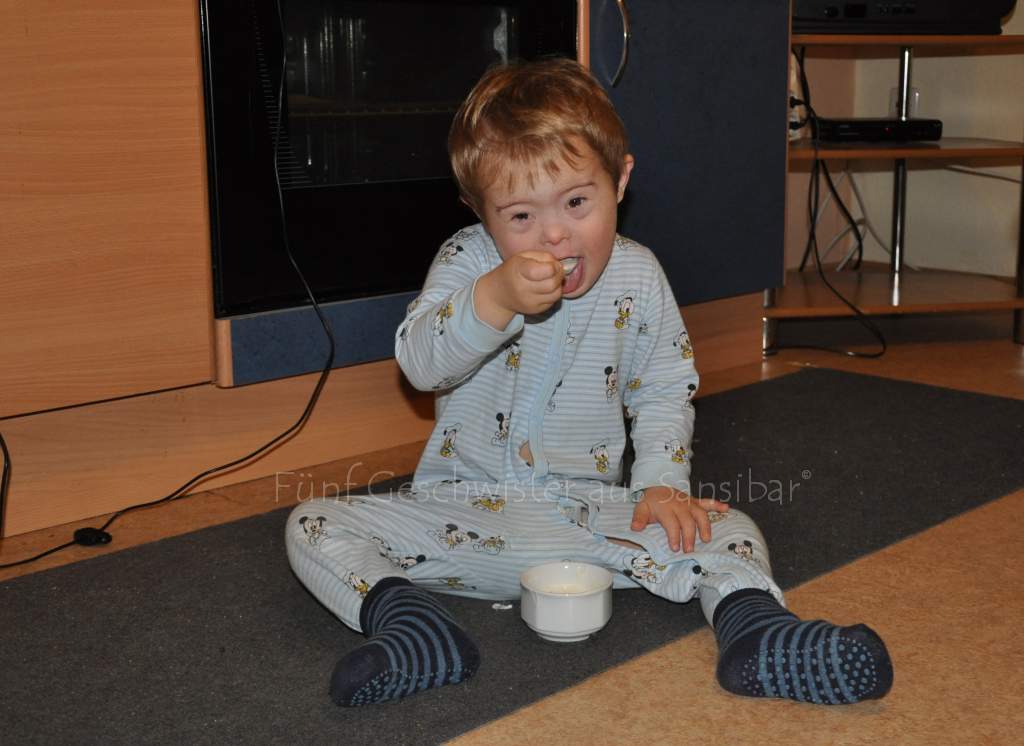 Ferienwohnung bedeutet stets Selbstverpflegung. Aber dank einiger Einladungen waren es nur Tage, an denen wir selbst gekocht haben. Und an denen gab es überwiegend einfaches und schnelles Essen. So lange es Joghurt gibt, ist Josia glücklich.