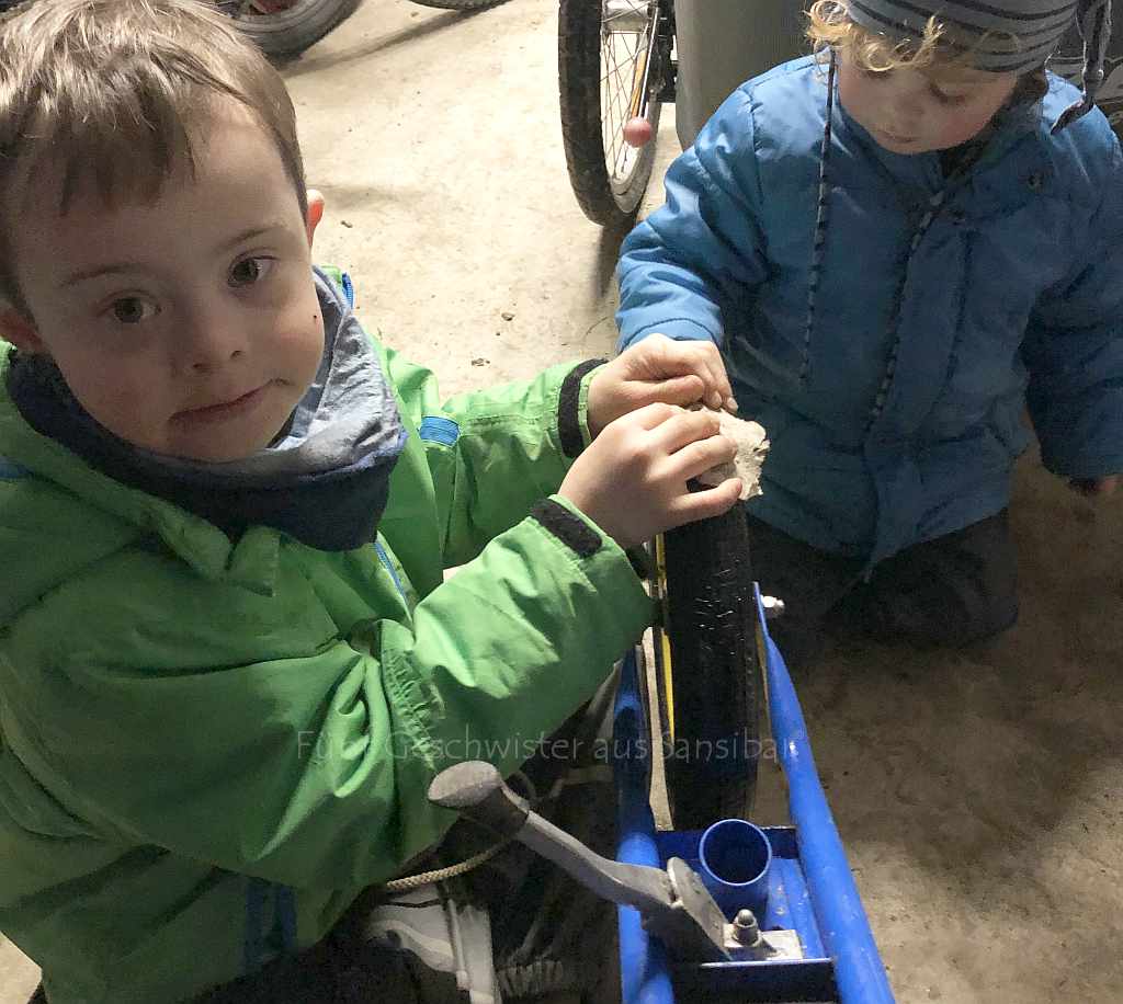 An diesem Nachmittag hatten wir Besuch von Josias Babysitterin. So wirklich produktiv war ich aber trotzdem nicht. Es gab einiges im Haushalt zu tun und ein bisschen Bloggen ging zum Glück auch noch. Wie bereits am Tag davor, sind die Jungs erst raus, als es schon fast dunkel wurde. Der Regen ließ auch diesmal nicht lange auf sich warten. Als er stärker wurde sind die Jungs einfach noch eine Weile in die Garage gesessen und haben dort das Laufrad „repariert“.