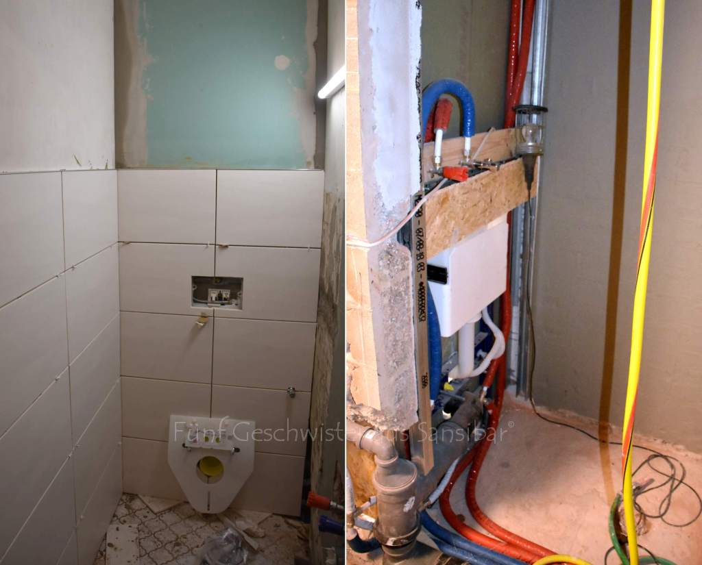 Am Mittwoch habe ich zuerst noch Bilder von unserem aktuellen Bad und Klo gemacht – gewisse Erinnerungen müssen auf alle Fälle erhalten bleiben 🙂