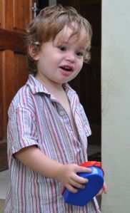 Dann gab´s natürlich noch Geburtstagskuchen und dank väterlicher Hilfe hat Joel es auch geschafft, seine zwei Auto-Kerzen auszublasen. Und dann hat er Stück für Stück die Gummibärchen vom Kuchen gefuttert.