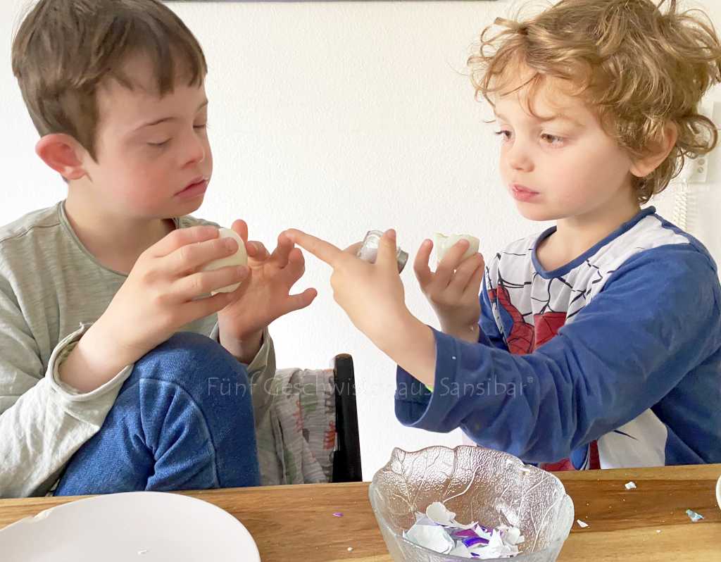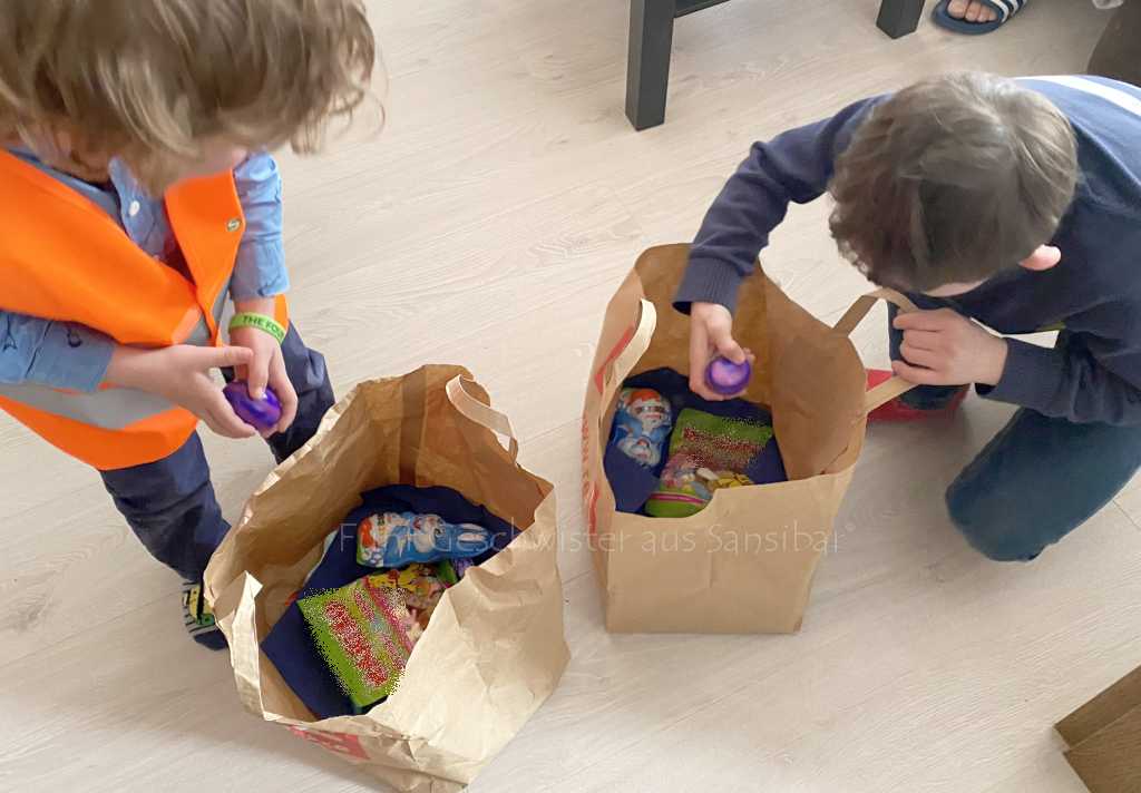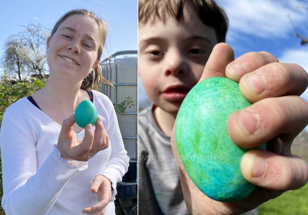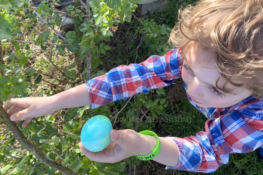 Am Nachmittag haben wir schnell noch ein paar Eier gefärbt, einen Hefezopf gebacken und einen kurzen Besuch bei Claudia und Nicki gemacht. Dort gab es dann die ersten Osternester für uns. Ben hat bei seiner Suche noch eine Christbaumkugel unter dem Sofa ausgegraben, was uns alle sehr zum Lachen gebracht hat.