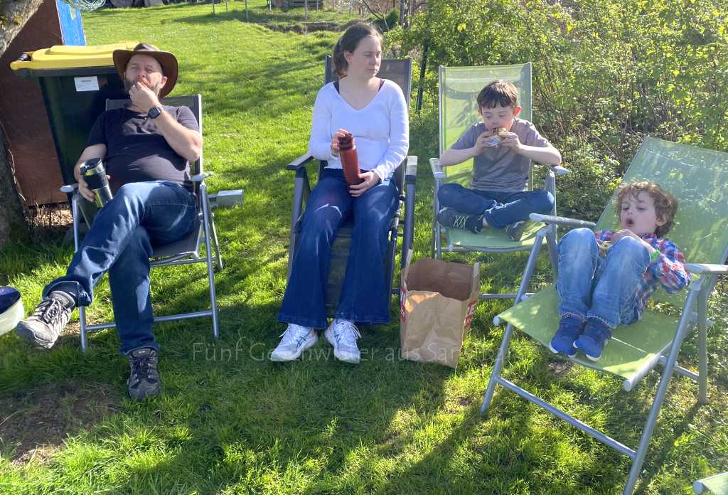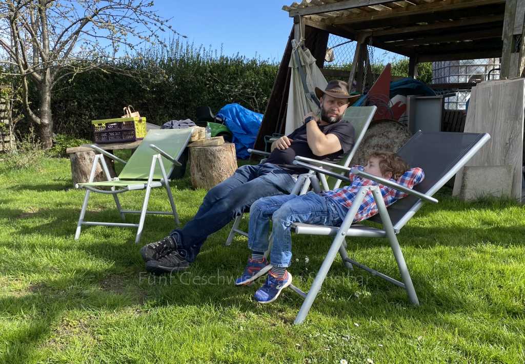 Der Ostersonntag bescherte uns ein schönes Frühstück und wenig später ging es in den Gottesdienst. Joel musste gleich im Anschluss zu seinem Musical-Camp gefahren werden. Zum Glück lag der Camp Ort nicht zu weit entfernt, weil er nämlich seinen Kulturbeutel Zuhause hatte liegen lassen. Während ich dem Kind Zahnbürste und Co nachgefahren habe, leistete mein Mann „erste Hilfe“ am Auto einer Freundin. Anschließend verbrachten wir den Nachmittag mit dem verbliebenen, kleinen Teil der Familie in unserem Garten.