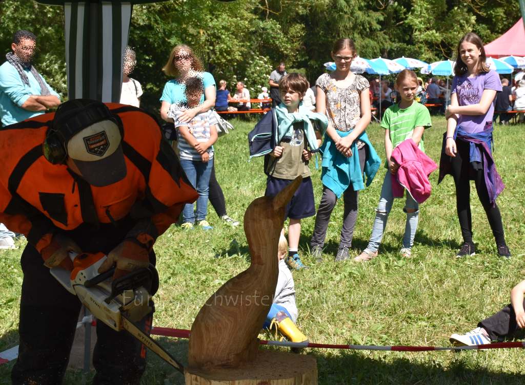 Mein Bruder war mit seinem Hobby aktiver Teil des Festes. Man konnte ihm beim Schnitzen mit der Kettensäge zuschauen und natürlich auch Kunstwerke käuflich erwerben. Hier entsteht gerade eine Ente.