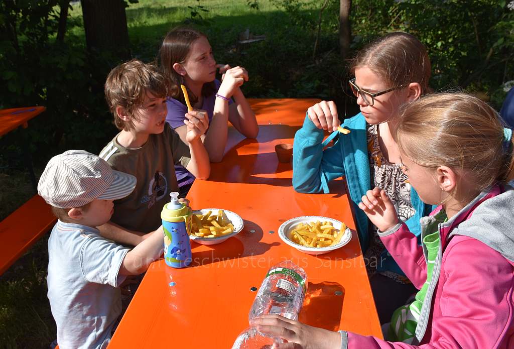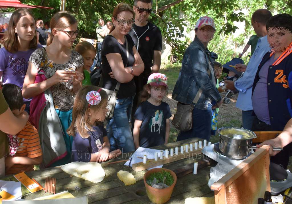 Die Kinder sind noch bei der Führung durch die Mühle mitgelaufen und die Mädchen haben sich am Stand der Imkerin einen Lippenbalsam zusammengerührt. Abschließend gab es noch ein paar Pommes und dann sind wir wieder nach Hause geradelt.