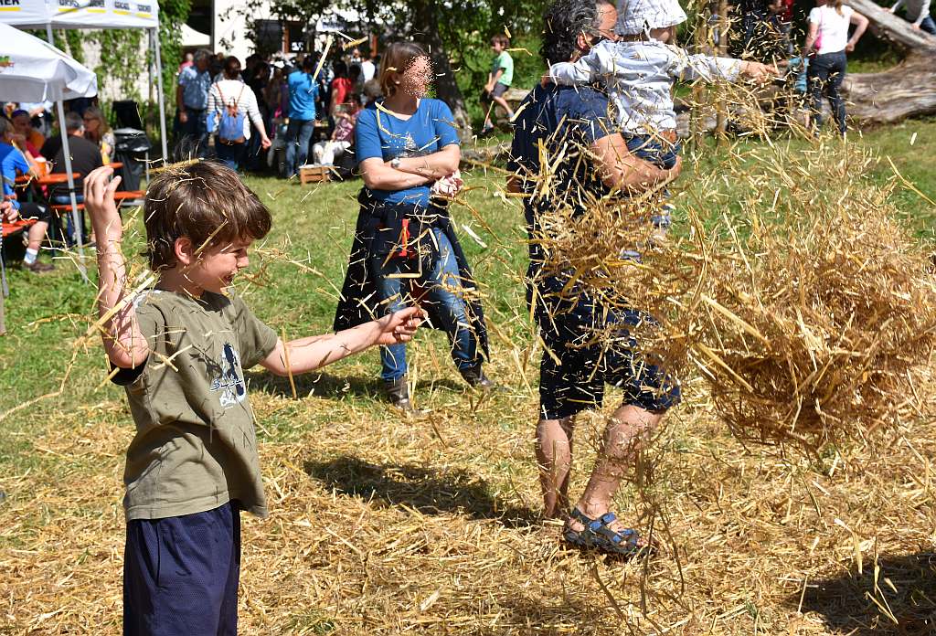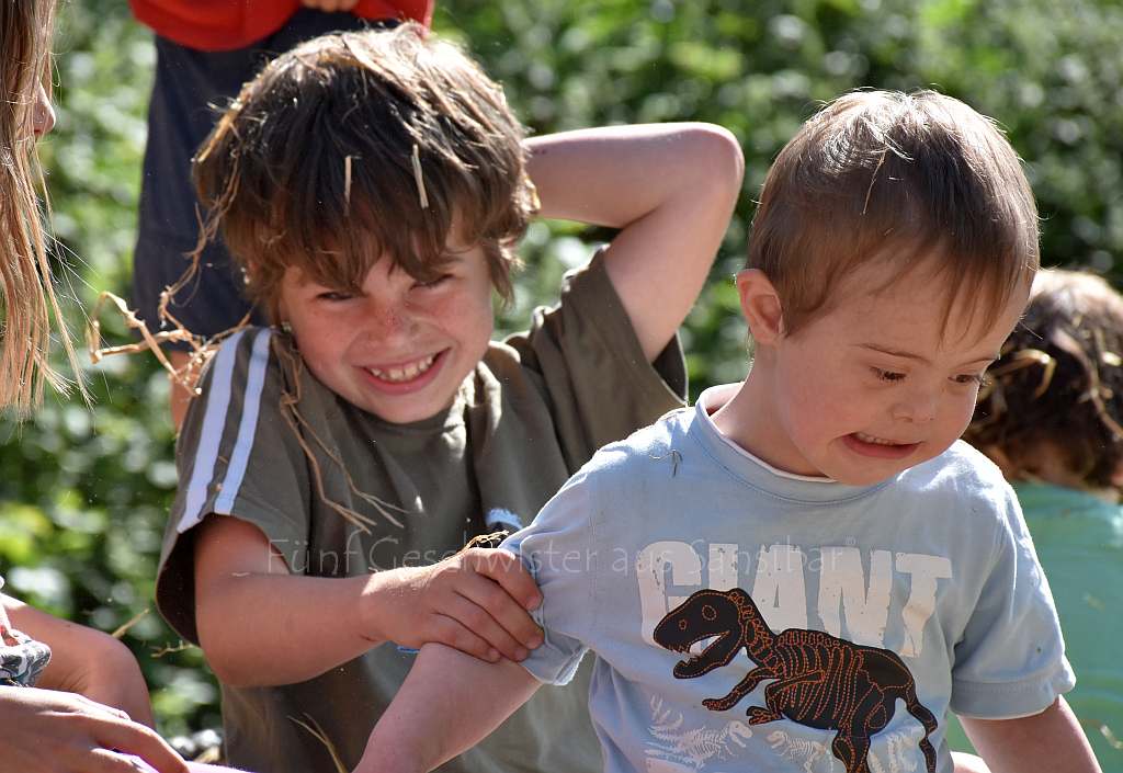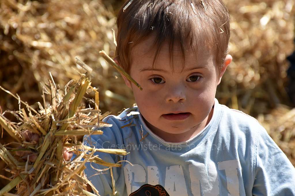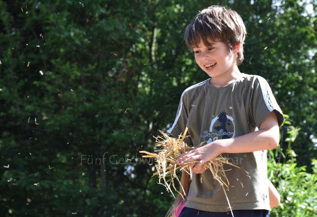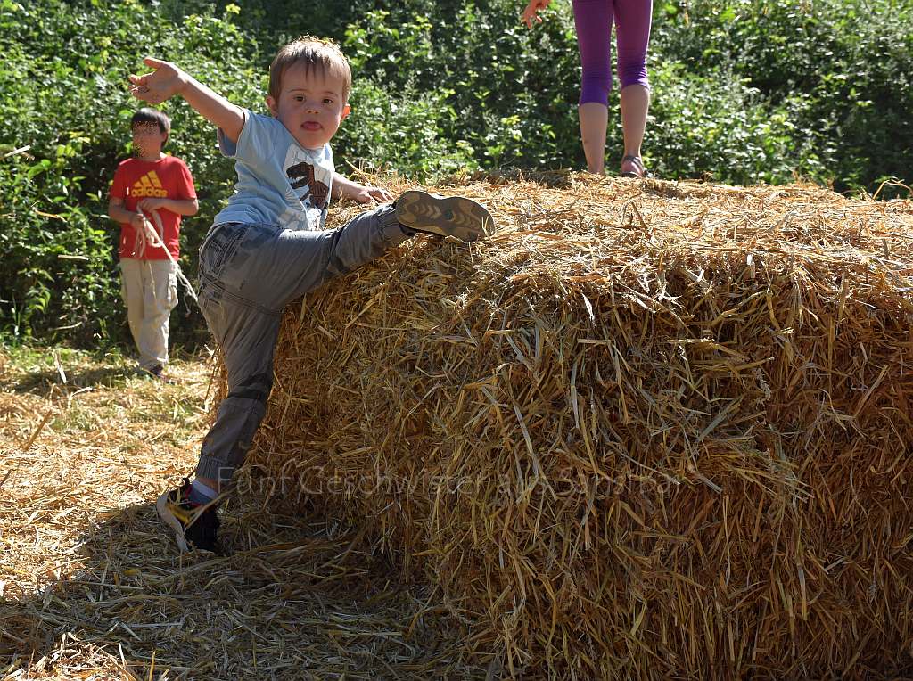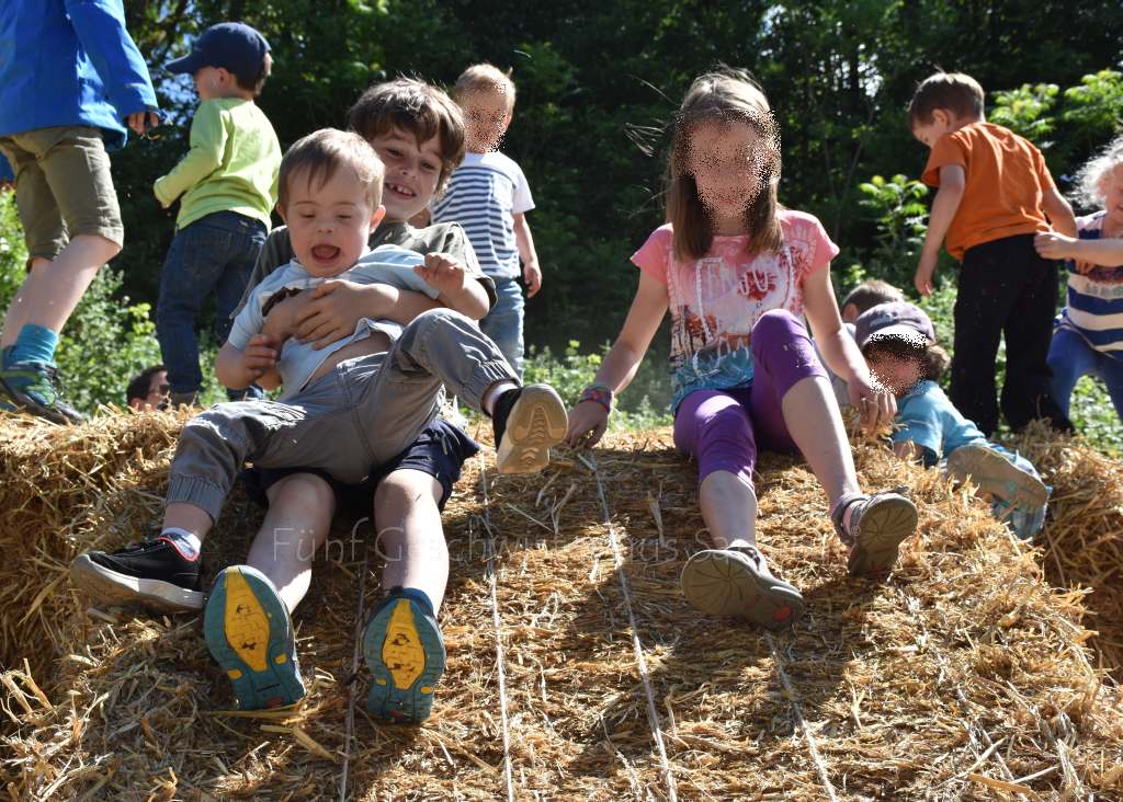 Es war einiges los und Joel hat direkt ein Mädchen aus seiner Klasse getroffen. Die beiden hatten viel Spaß auf der Strohburg, Josia stets auf den Fersen, der ebenfalls unermüdlich war im Klettern, Rutschen und Strohwerfen. Ich denke, um eine Dusche kommen die zwei Jungs heute nicht drum herum!