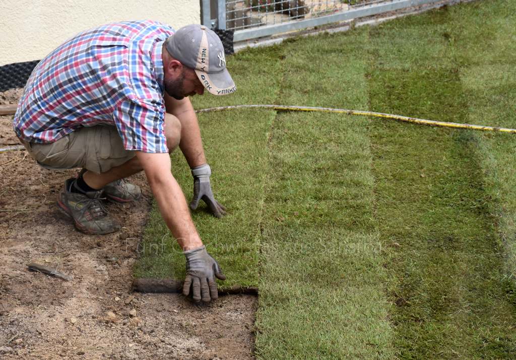 Ich habe das Gästezimmer vorbereitet, während Ha-Di im Garten tätig war. Er wollte unbedingt noch den Rasen verlegen, bevor wir in den Urlaub fahren. Und so haben wir Anfang der Woche Maß genommen, und Rasen bestellt, der ebenfalls am Freitag bei uns eingetroffen ist. Mann, Söhne und ein Freund waren also im Garten beschäftigt.