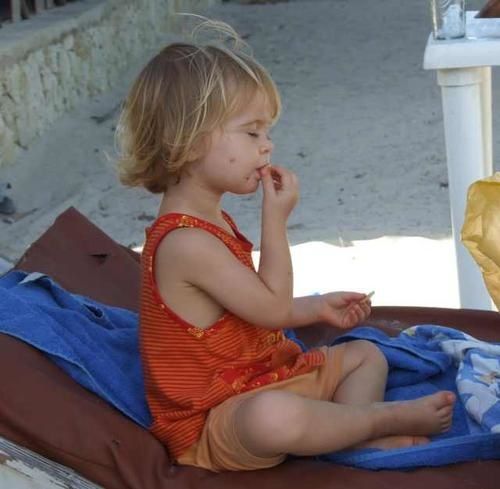 …wie sie Flaschen-Basketball mit ihrer großen Schwester spielt und sich am Strand voller Genuss mit Salzstangen stärkt (in Dar gibts sowas sogar zu kaufen – leider etwas teuer)….