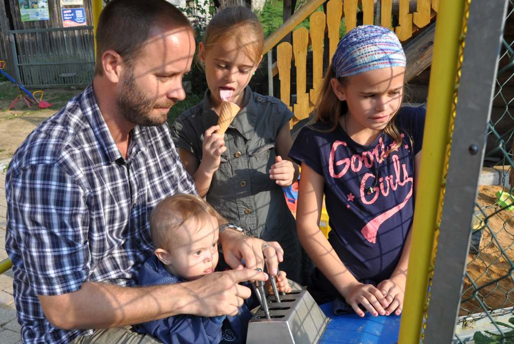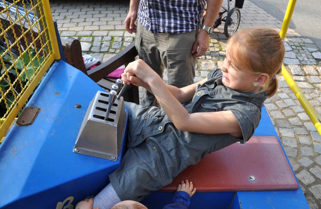 Die Kinder haben ein Eis bekommen und Papa hat sich eine hausgemachte Wild-Salami gegönnt. Davon wollte ein Teil der Kinder ebenfalls was abhaben, obwohl das Eis noch nicht einmal verspeist war. Nebenbei durften sie noch eine Runde Bagger fahren. Außerdem gab es eine kleine „Spielhalle“ für Kinder, an der wir nicht unbesehen vorbei kamen. Eine Runde Box-Auto (bzw. Auto-Scooter) hat der Papa zur Freude aller Kinder auch noch spendiert.
