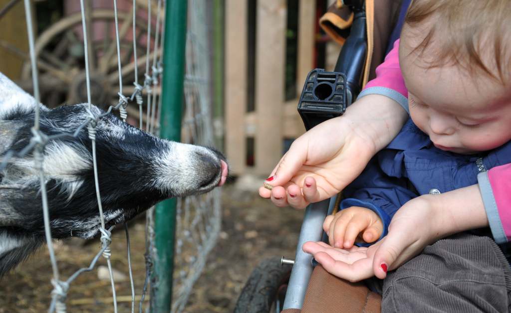 Josia war nicht nur von den Tieren fasziniert, sondern ebenso vom Futter, ganz nach dem Motto: wenn die alle so scharf drauf sind, dann muss ich das schnell auch mal probieren! Und schwups wanderte ein Futterkörnchen in seinen Mund. Aber nur für einen kurzen Moment, bevor wir es wieder herausgefischt haben.