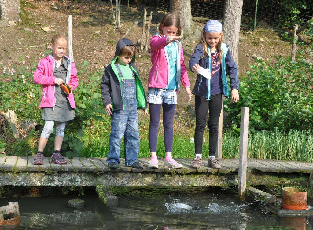 Eine große Forellenzucht gab es auch noch zu besichtigen – und die Fütterung der Tiere ging weiter. In einem Schau-Aquarium waren auch noch weitere Fischarten. Und ganz am Ende stand zwischen all den Teichen noch ein Lama 🙂