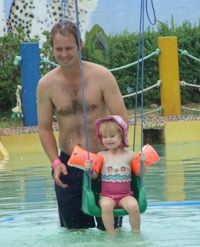 Natürlich waren wir auch im größten Wasser- und Rutschenparadies von ganz Ost- und Zentralafrika mit über 30 Wasserrutschen – wobei nie alle funktionieren. Als wir dort zum ersten Mal vor gut eineinhalb Jahren waren, haben wir fluchtartig den Rücktritt angetreten, weil es vor lauter schwarzen Kindern nur so gewimmelt hat. Ich hab noch nie in meinem Leben so viele Kinder in einem Wasserbecken gesehen wie an diesem Tag. Es ging zu wie auf einem großen Ameisenhaufen.
